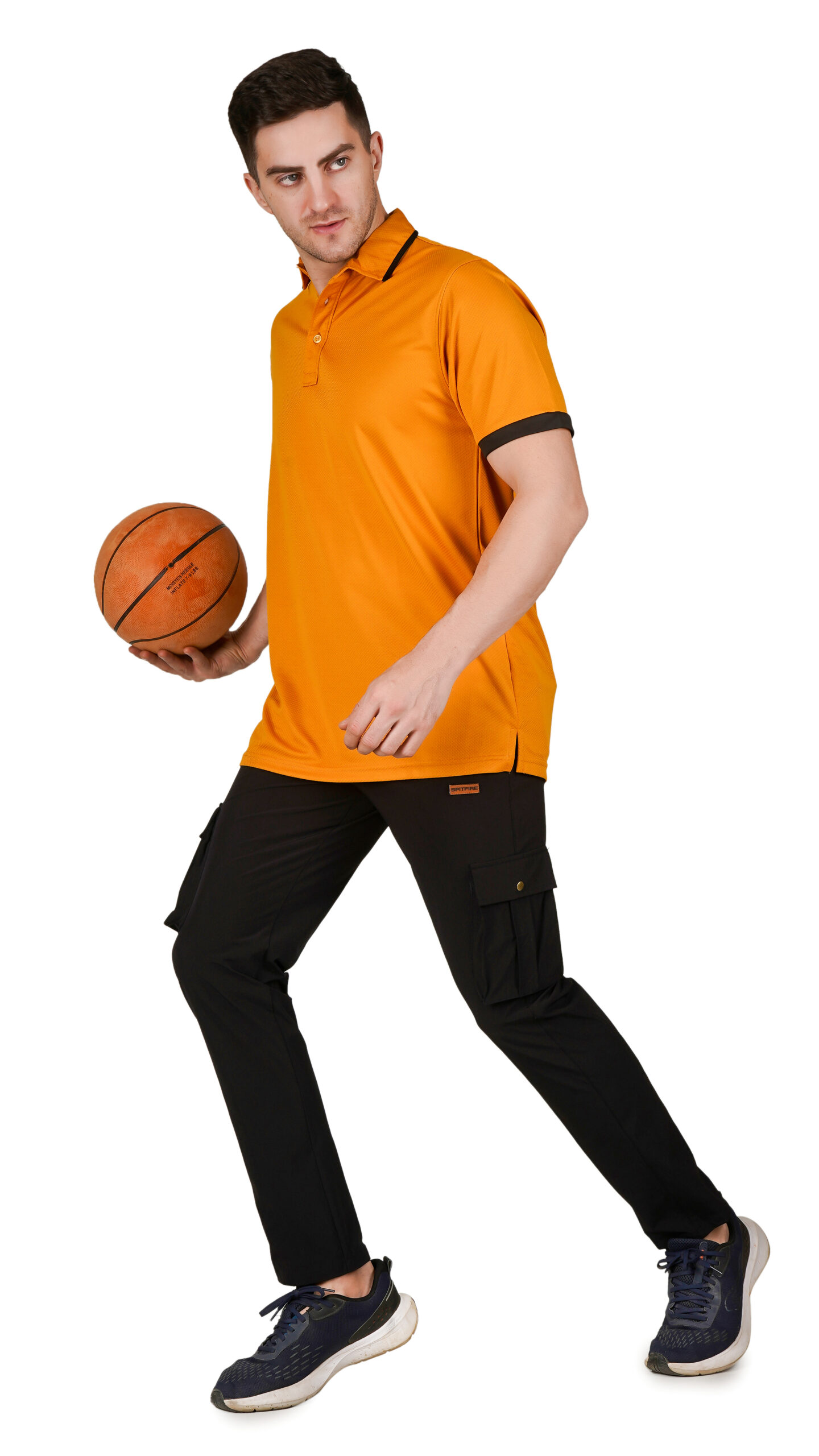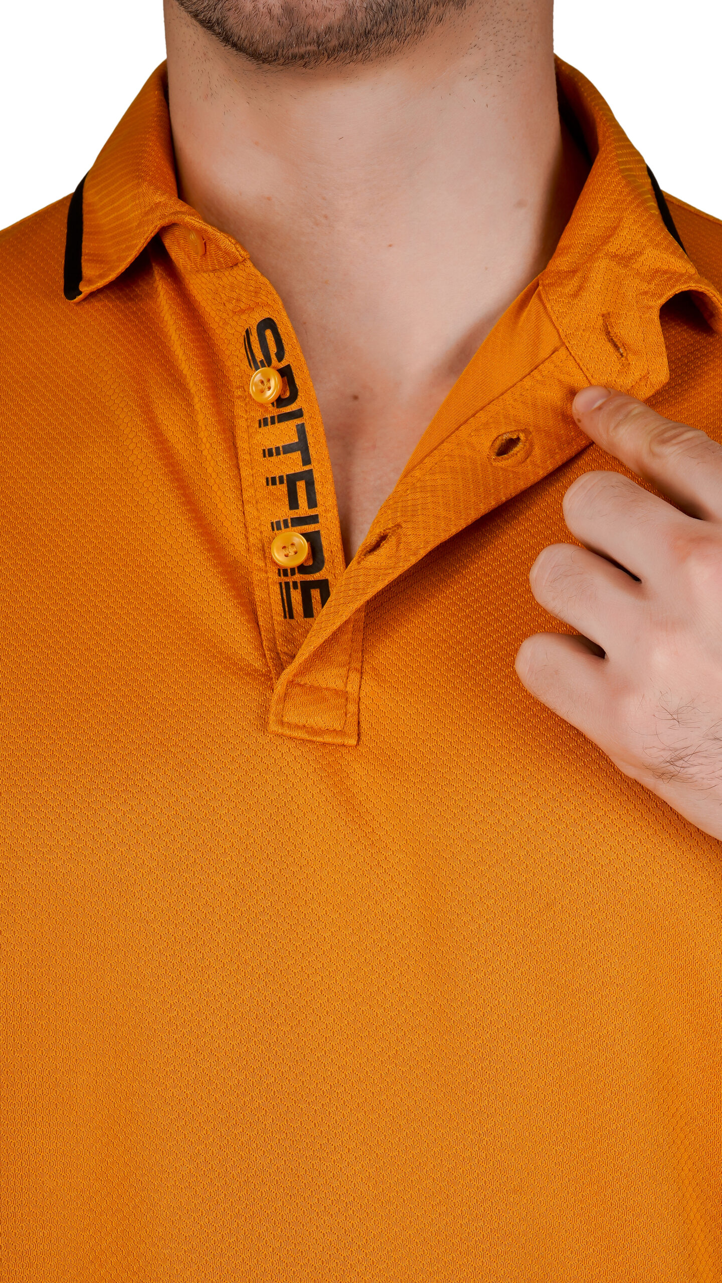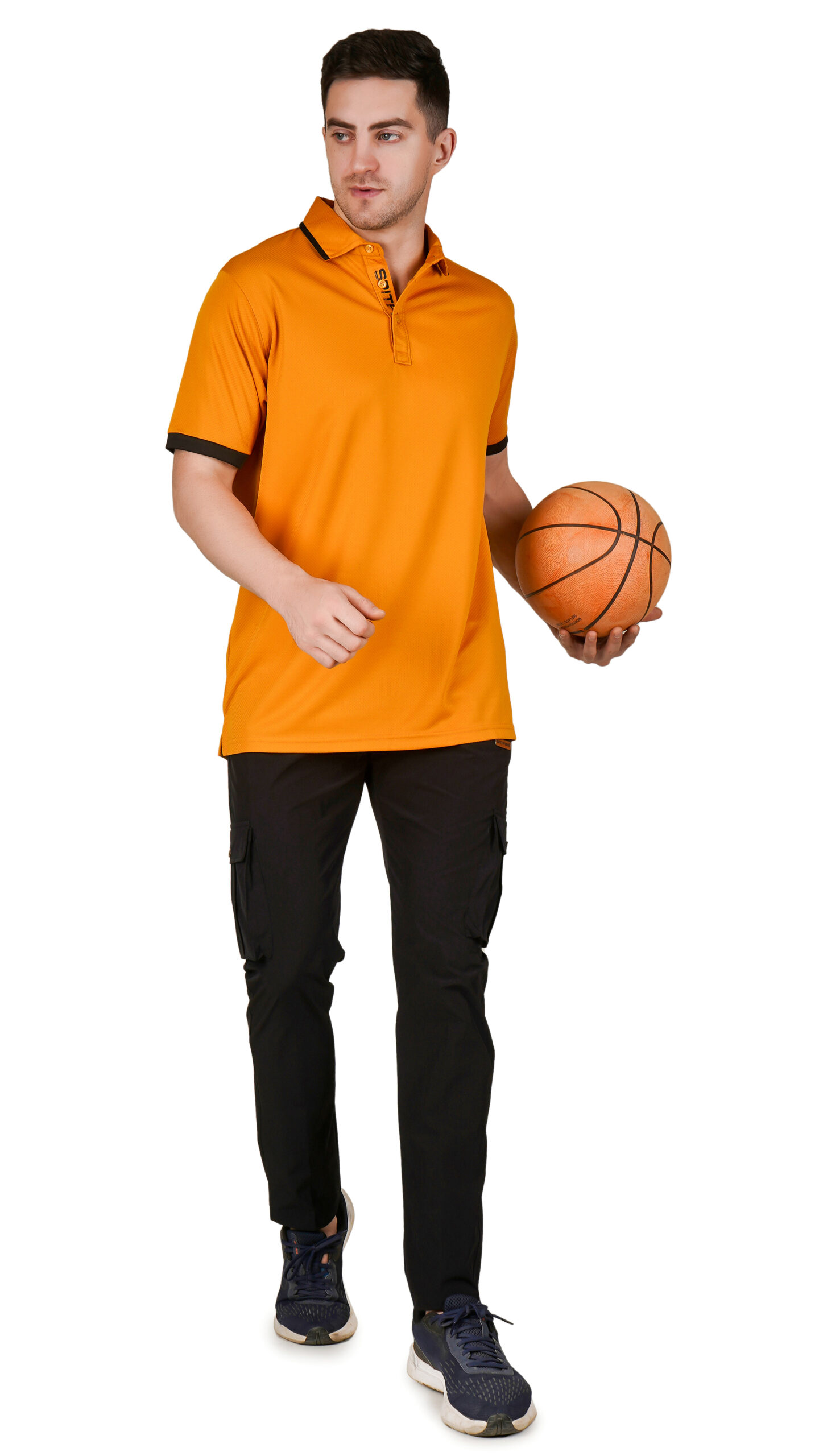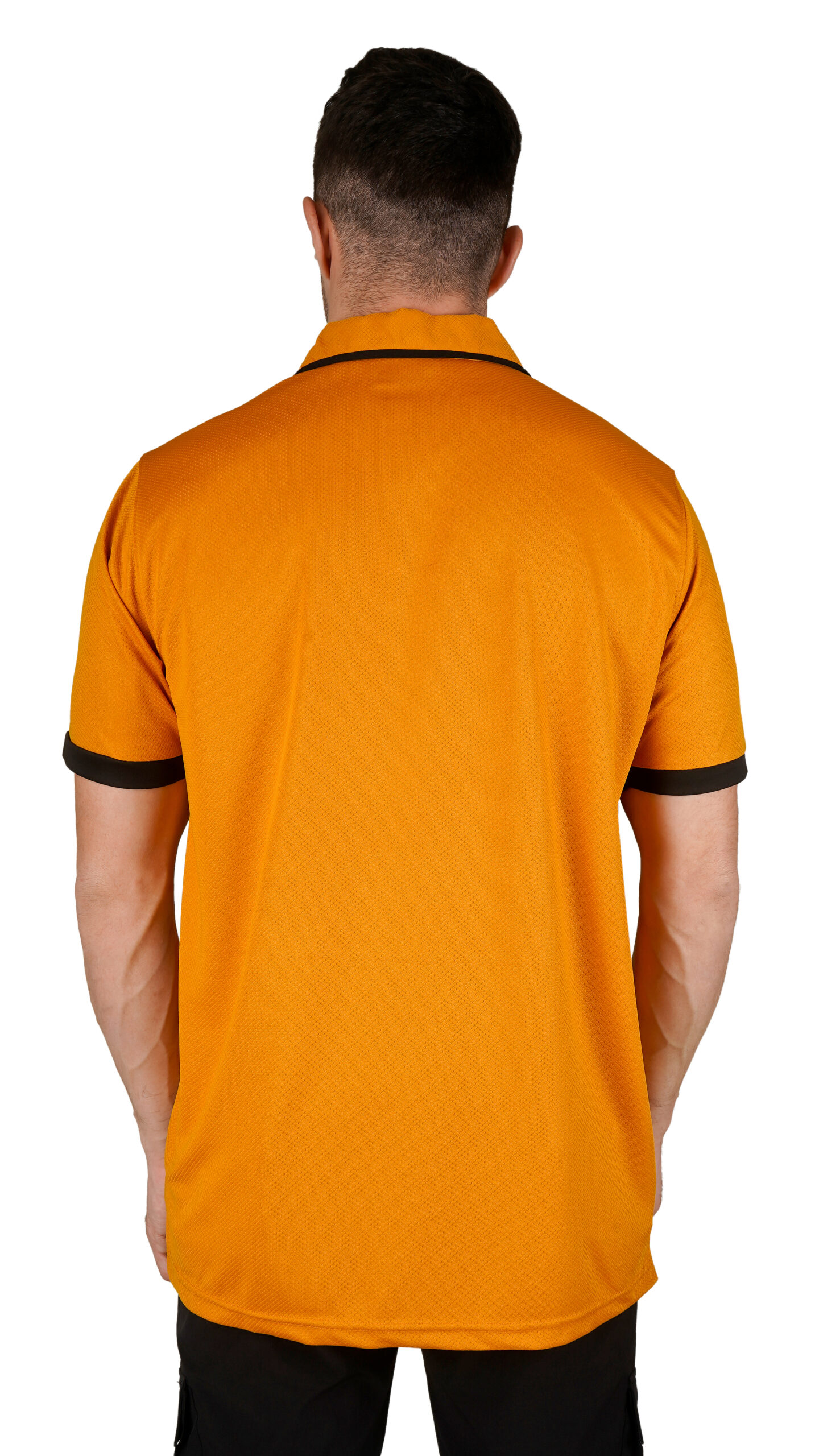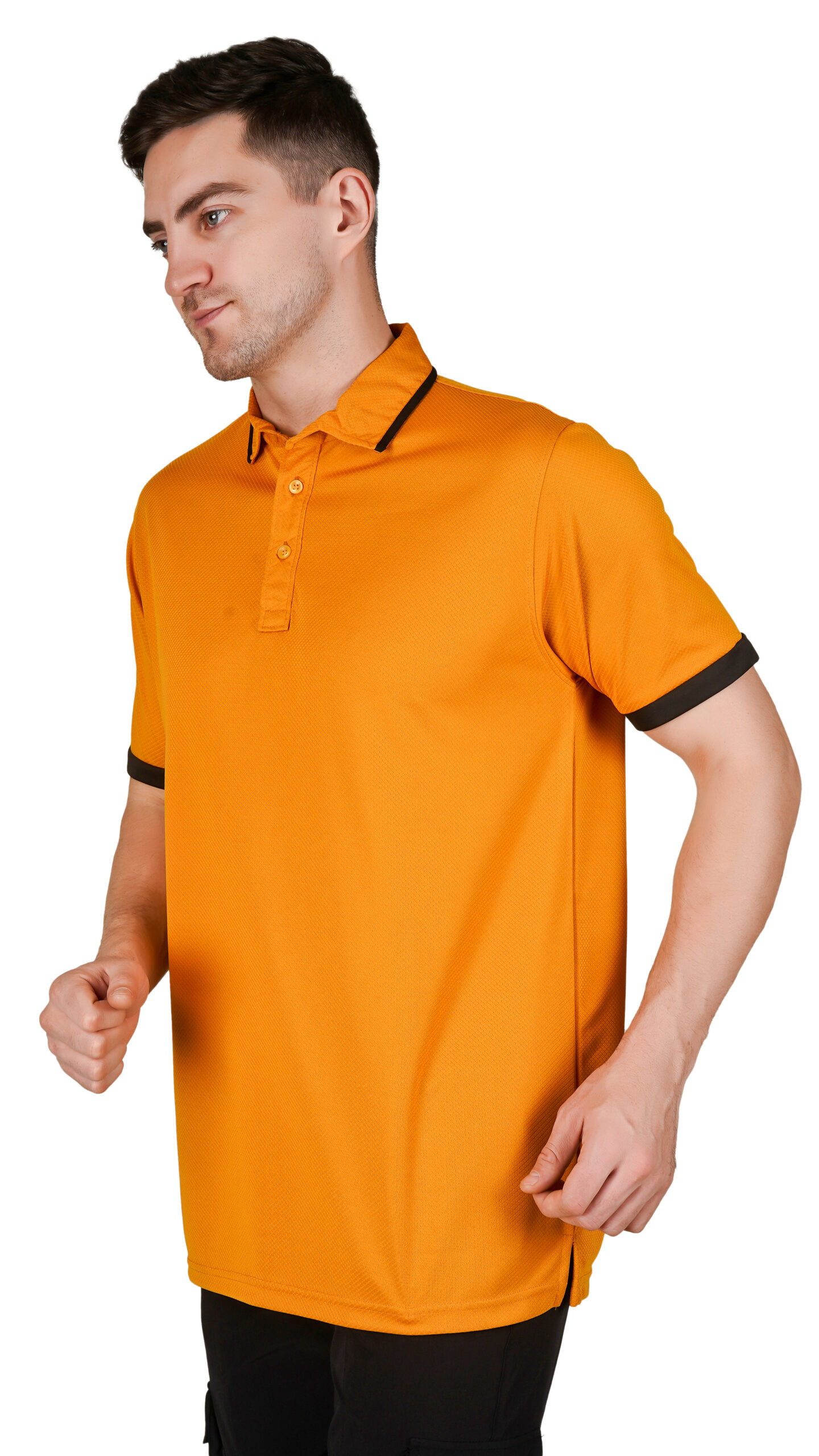 This bright orange Half Sleeves T-shirt offers a fresh, modern look. It features a classic polo-style collar with a buttoned placket and black accents on the collar and sleeves for a clean contrast. Made from soft, breathable fabric, it’s comfortable and lightweight, perfect for casual outings, work, or outdoor activities.